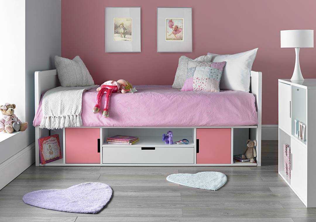 Кроватью с подъемным механизмом и внутренними ящиками для хранения уже никого не удивишь. Однако для детской комнаты гораздо более удобной будет модель с открытыми и закрытыми полками и выдвижными ящиками в основании. Удобный и стильный вариант для хранения игрушек и других мелочей, обеспечивающий быстрый и легкий доступ ко всему необходимому.