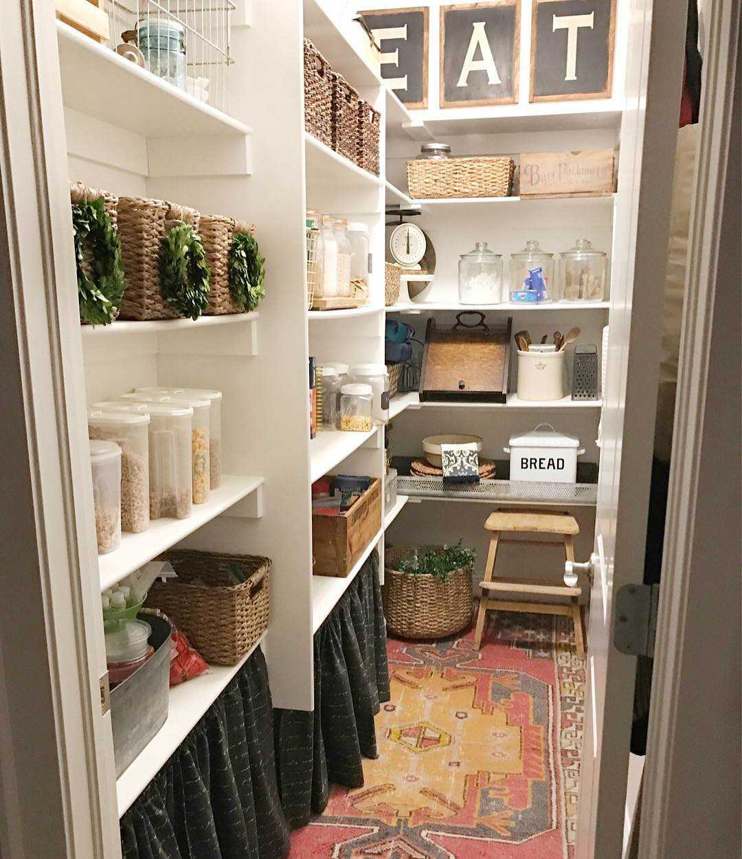 Небольшое пространство, отведенное под хранение, позволит оформить саму кухню лаконично и при этом разместить все припасы, а также не отказываться от необходимого инвентаря и посуды.