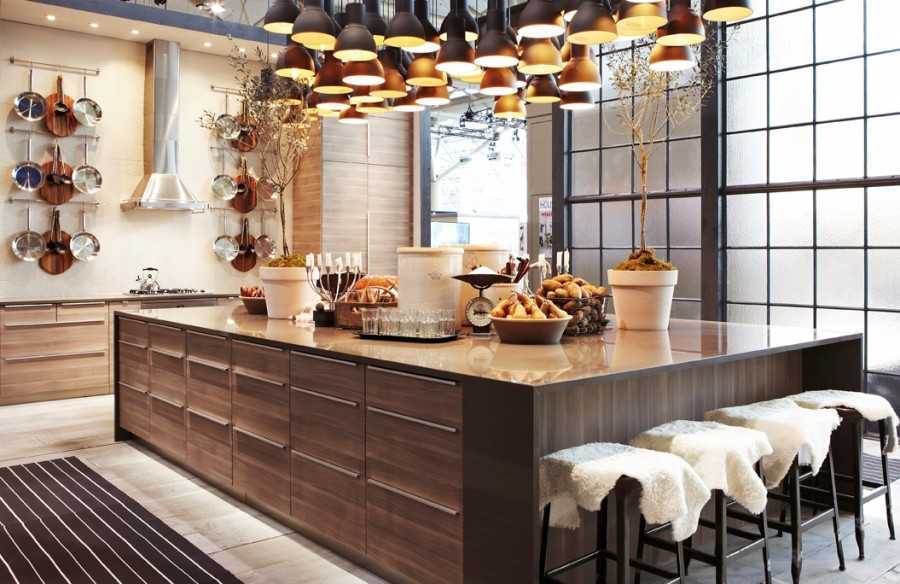 Для обустройства кухни икеа в интерьере небольшой квартиры, можно размещать только кухонные островки для расположения необходимого инвентаря и аксессуаров. Оставшееся пространство используйте для воплощения понравившегося интерьера.