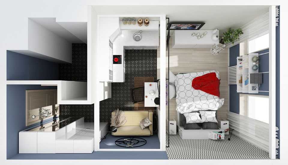 Варианты зонирования в дизайне квартиры-студии 25 кв. м.