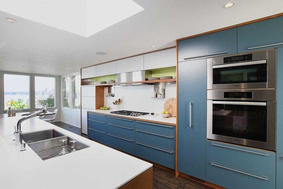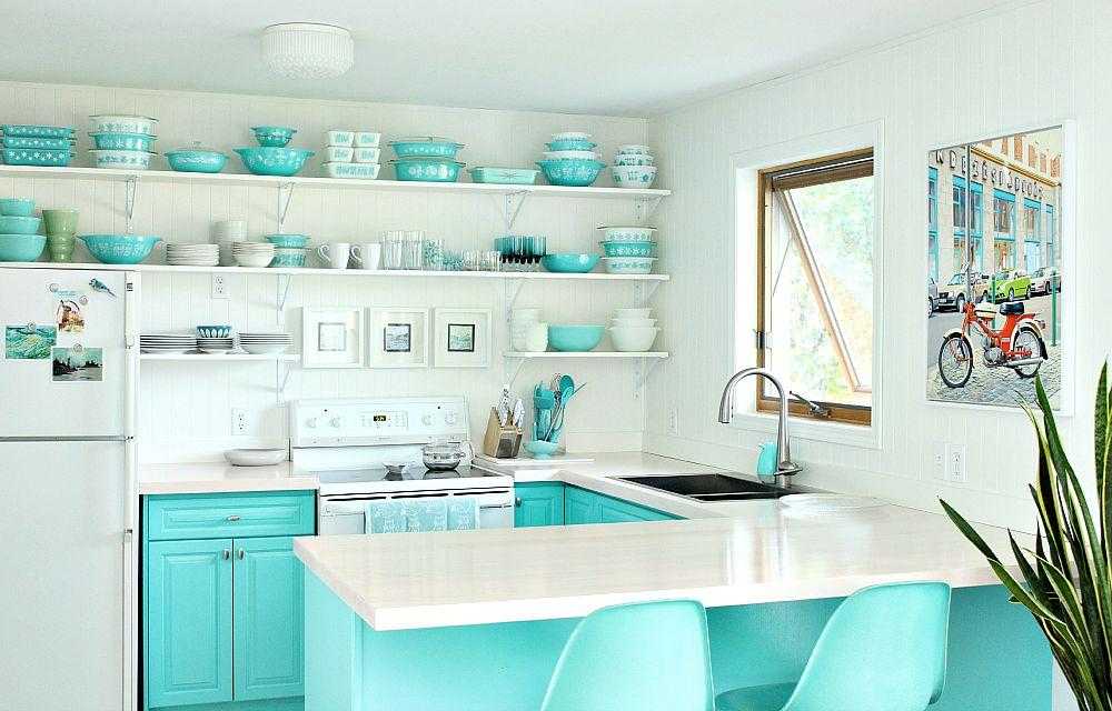Оригинальный бирюзовый дизайн интерьера в кухни