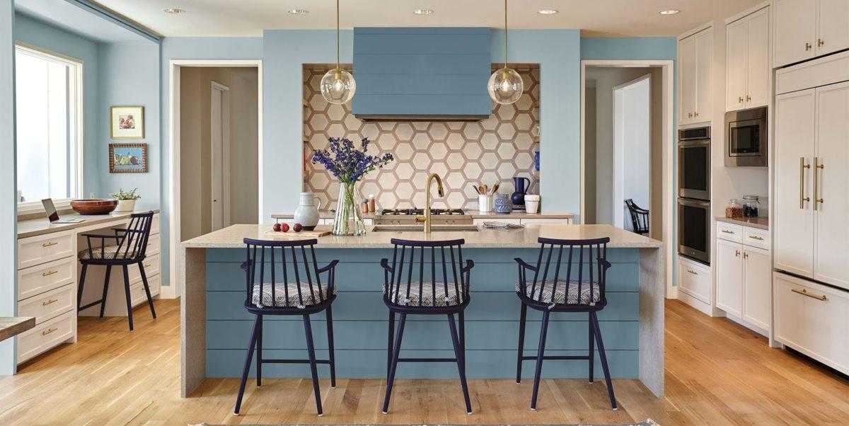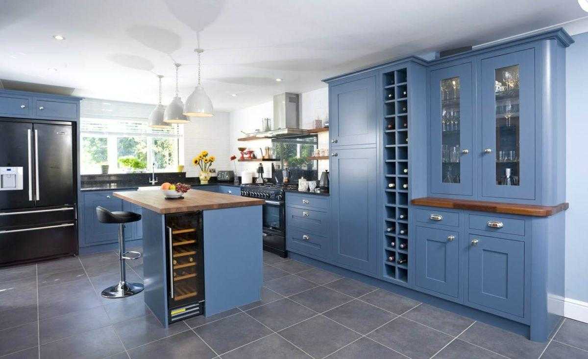 Голубая кухня в интерьере квартиры/дома, при грамотном подборе декоративных составляющих будет напоминать о летнем отдыхе на море, в горах, создавать бесконечное ощущение полёта по бескрайнему небу.
