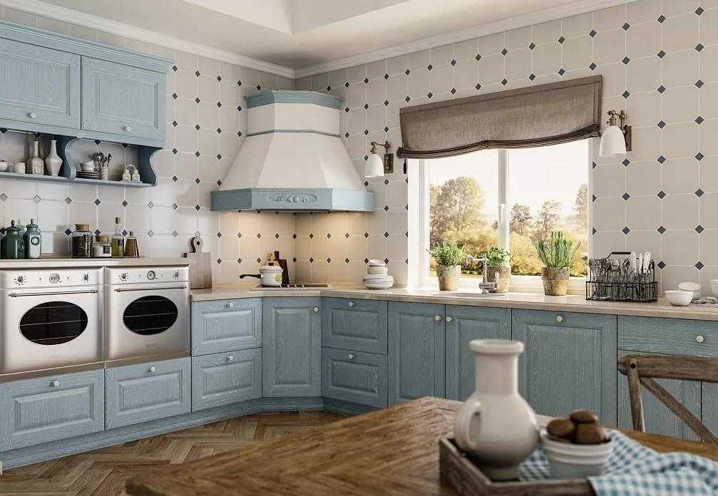 Не стоит забывать и о том, что кухня должна выглядеть просторно и светло. Для этого потолок можно оформить белым или нежно-бирюзовым цветом. Стены можно отделать обоями, керамической плиткой или обычной краской спокойных оттенков. Уместно приобрести более яркую мебель, шторы или жалюзи.