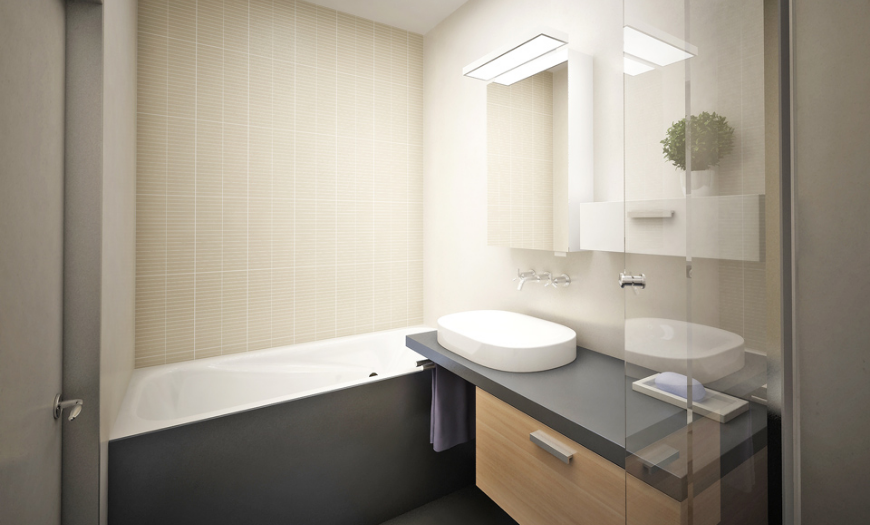 Если в комнате мало места для умывальника, то его располагают непосредственно над ванной. Такие модели меньше стандартных и хорошо вписываются в интерьер.