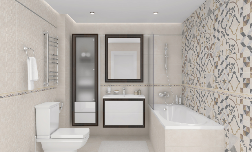 - В 2022 году в тренде будет плитка. Ею оформляют стены, кладут на пол. Следует выбирать нескользкий вариант. В противном случае можно получить травму. Расцветка плитки может быть различной. Особенно привлекательной вариацией будет использование плитки с мелкими рисунками.
