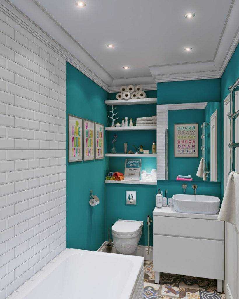 Тогда раковина и стиральная машина расположатся сбоку, и останется ещё некоторое свободное пространство. Всевозможные подвесные полки, ящики, шкафы будут как нельзя кстати, так как за счёт этого освободится пространство на полу.