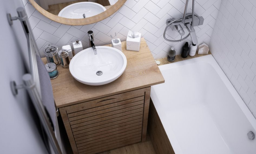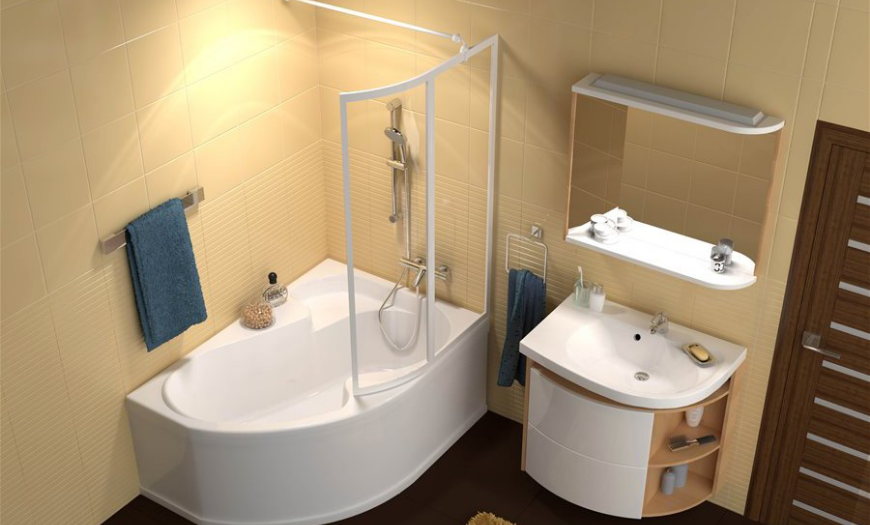 Ванна и раковина займут меньше места, если заранее продумать их форму и взаимное расположение