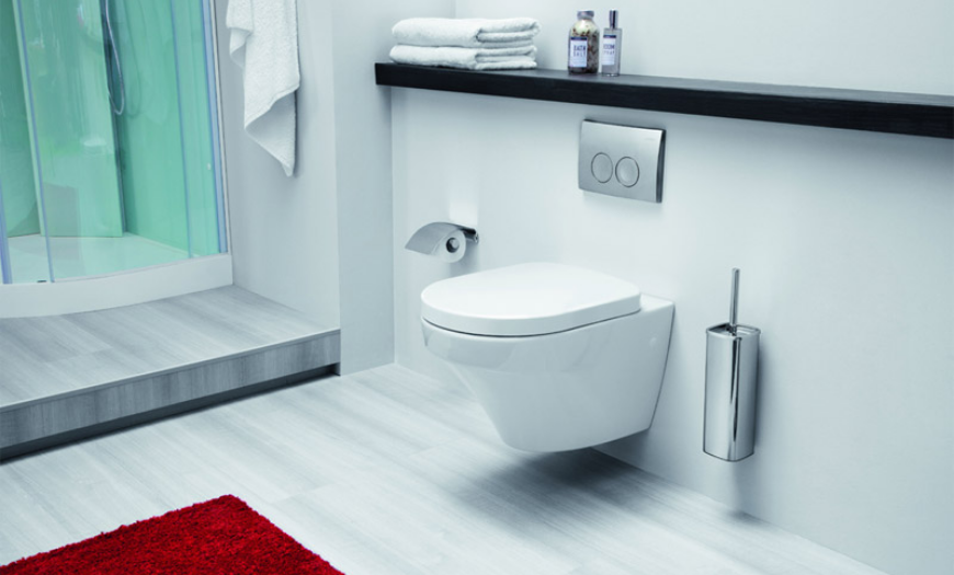 Унитаз лучше использовать подвесной, занимающий меньше места и облегчающий уборку