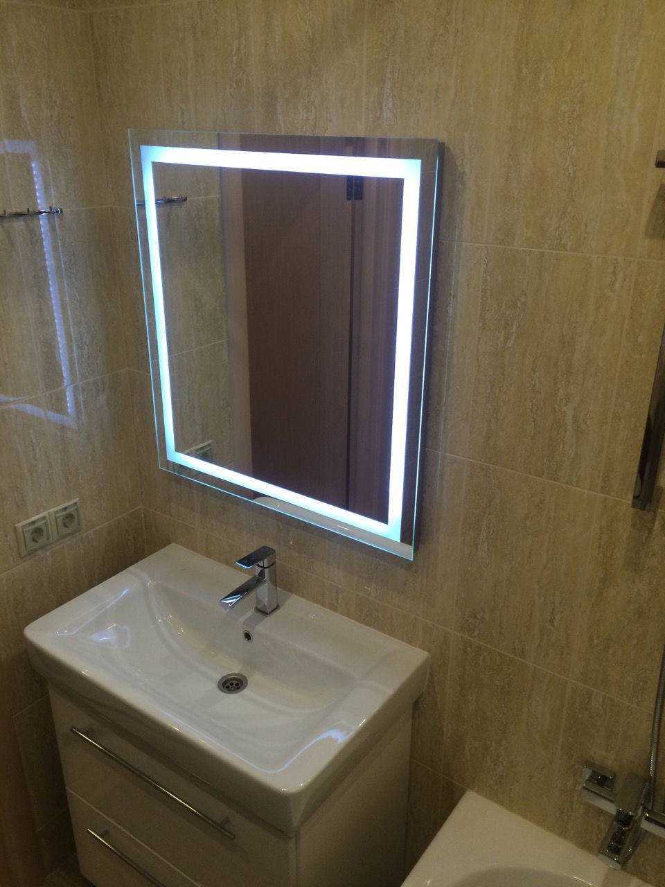 Неплохо для маленькой ванной использовать и такой прием, как установку специальных видов подсветки — настенных бра или светодиодных элементов подсветки зеркала. Современная светотехника позволяет использование светодиодов с изменяемым спектром свечения, что делает освещение многоплановым. Теплая гамма светодиодных ламп дает более мягкий желтоватый свет — такое освещение кажется слишком неестественным и даже слегка жарким. А вот холодный спектр обеспечивает световой поток, близкий к нормальному, естественному по качеству дневному свету. В таком спектре глянцевая плитка кажется более гладкой, что дает эффект расширенного пространства.