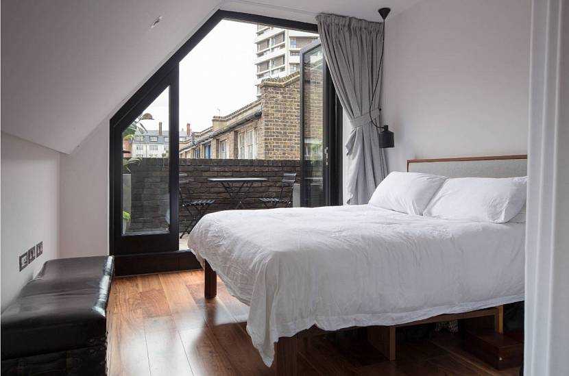 Полезно продуктивное использование окна — около него устанавливают стол. При известном старании и правильном подборе цветов нестандартная спальня будет выглядеть объемной и уютной.
