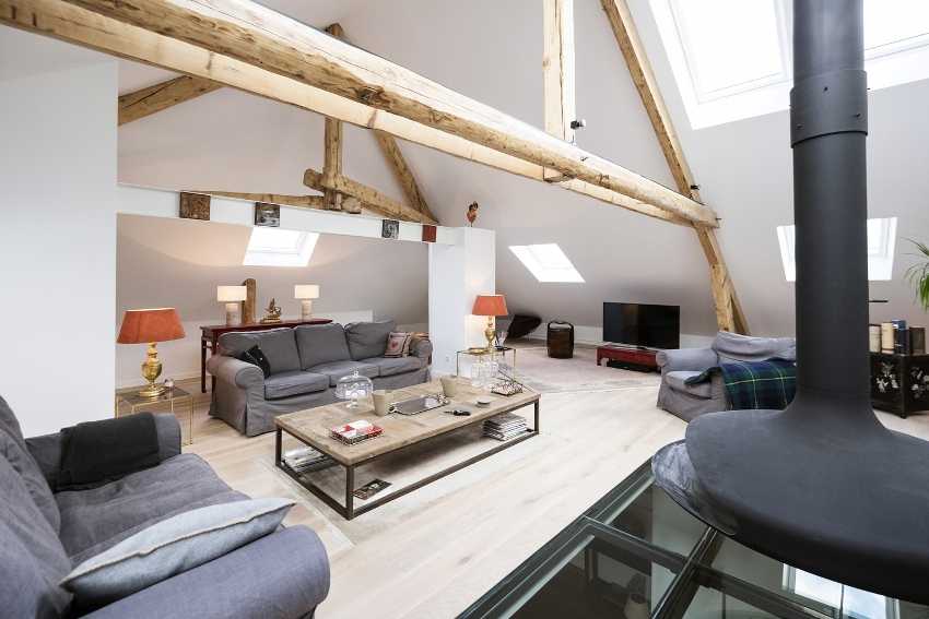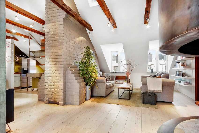 Стильное и практичное жилье на мансарде — с просторной гостиной и отдельной кухней