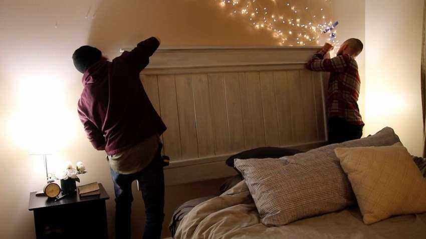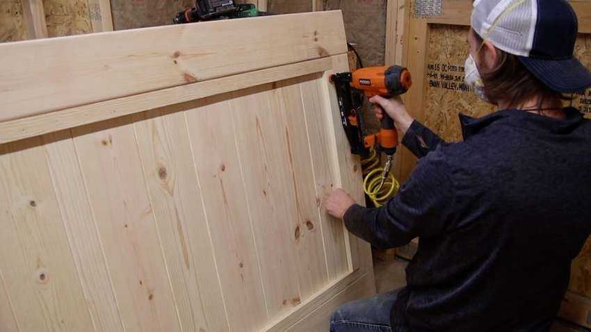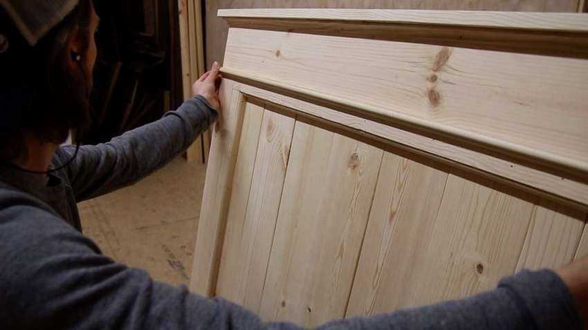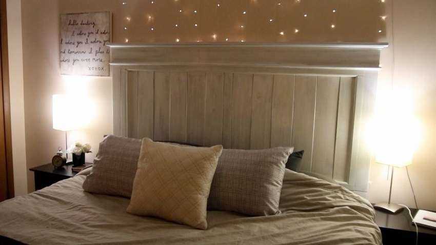Если кровать не имеет изголовья, его придется сделать самому. Доски нужно набить на деревянный каркас с минимальным шагом (3-5 мм) или вплотную. Надо учитывать влажность в помещении. Чтобы закрепить МДФ или фанеру на остов, подготавливают лист, размеры которого будут соответствовать габаритам основания.
