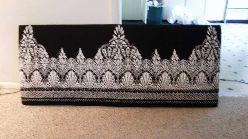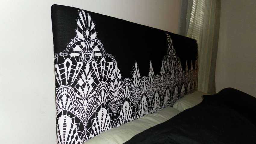 Если решается вопрос, как сделать изголовье кровати своими руками, рассматривают вариант декоративной отделки. Это может быть вышивка или рисунок на тканом материале. Тогда сначала украшается обивка, затем ее используют для отделки готового каркаса изголовья.
