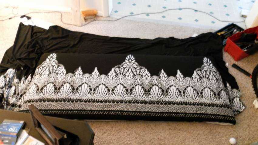- Пошив тканевой накидки на изголовье кровати согласно выкройке, выполненной по шаблону.