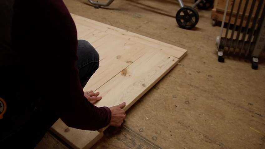 Выложите на полу ваши доски, отмерив, одинаковое расстояние между поперечными перегородками. Отметьте маркером, где необходимо сделать крепеж. Сбейте каркас длинными гвоздями, предварительно просверлив небольшие отверстия для облегчения процесса. После того, как каркас будет готов, произведите замер получившихся окон, это будут габариты фанеры с мозаикой. Отпилите фанеру с помощью ножовки.