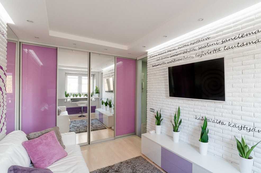 Важно! Если у вас есть возможность использовать встроенный шкаф-купе, тогда не задумывайтесь ни минуты. Такой шкаф поможет скрыть темные углы гостиной, а вы сможете дополнительно сэкономить на стоимости.