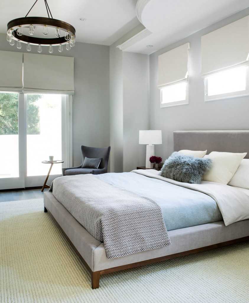 Позаботьтесь о многоуровневом освещении. Бесспорно, достойным решением будет красивая люстра в спальне. Однако степень освещенности регулируется при необходимости. И наличие приглушенного света не навредит.