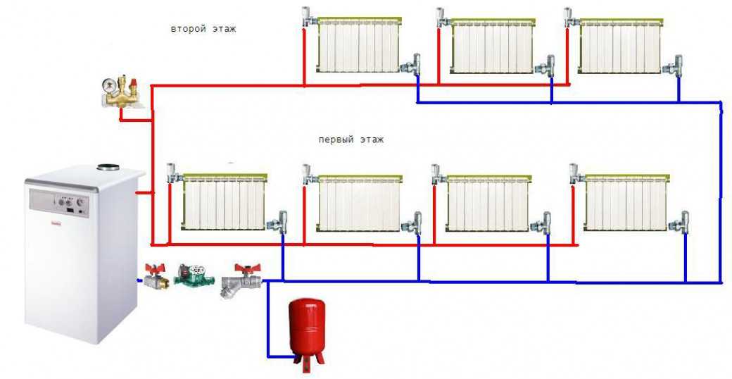 Вариант реализации системы отопления двухконтурного котла: