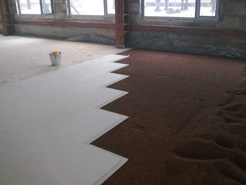 Применять для засыпки только фирменные сухие смеси: композитный песок марки Knauf, «Керафлур», АКЗ или «Компэвит» оригинального белорусского производства. Использование каких-либо других смесей возможно лишь профессионалами с большим опытом, которые смогут с первого взгляда отличить качество засыпки и то, соответствует ли фракция материала необходимым стандартам.