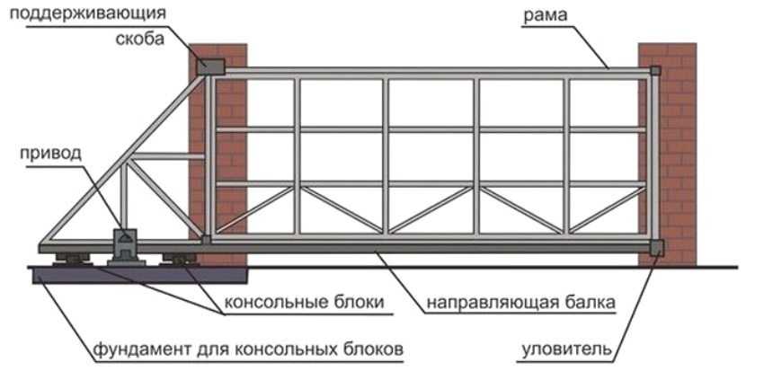 Перед сборкой приспособления нужно определиться с его габаритами и сделать качественный чертеж. Основными элементами ворот консольного типа являются обрешетка и массивная рама. Чтобы изготовить раму и обрешетку, нужно приобрести металлическую профильную трубу различных размеров.