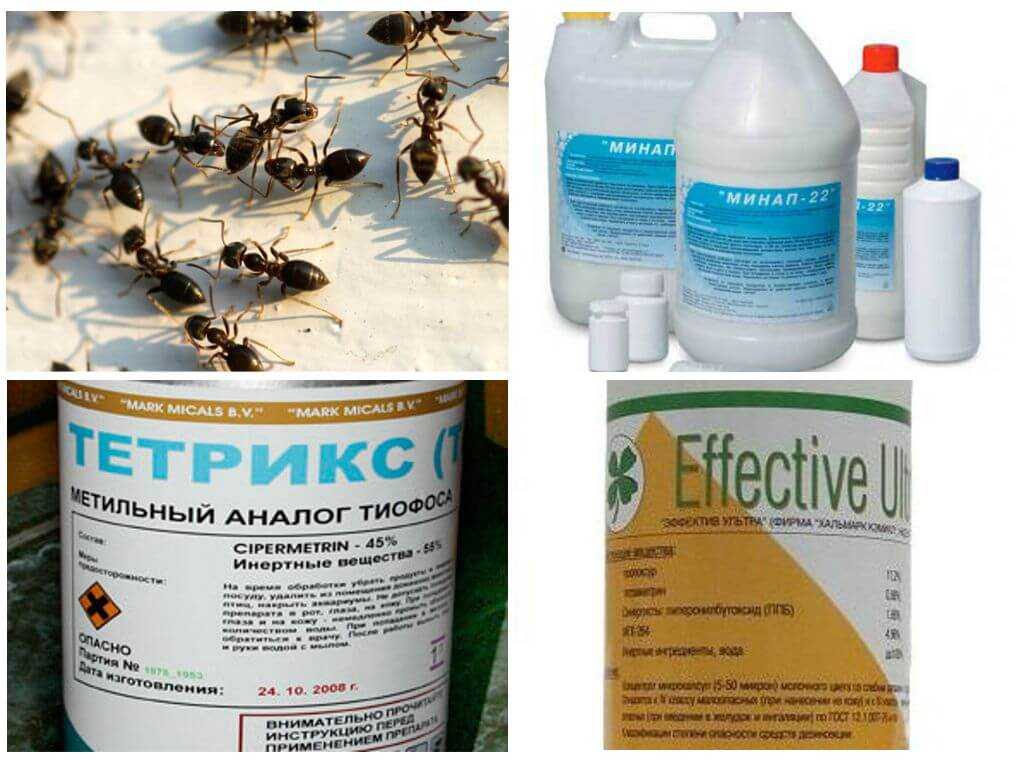 Бороться с муравьями можно любым инсектицидом широкого действия. Яд вызывает быстрый паралич мышц, смерть. Для получения смертельной дозы достаточно минимального количества. Средство проявляет высокую эффективность в случае, если гнездо не удалось найти.