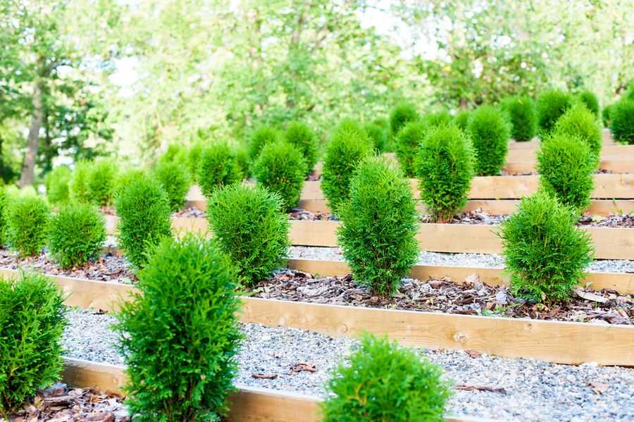 Туи используют в одиночных, групповых посадках и для создания живых изгородей. Схема расположения и расстояние между растениями зависят от выбранного способа: