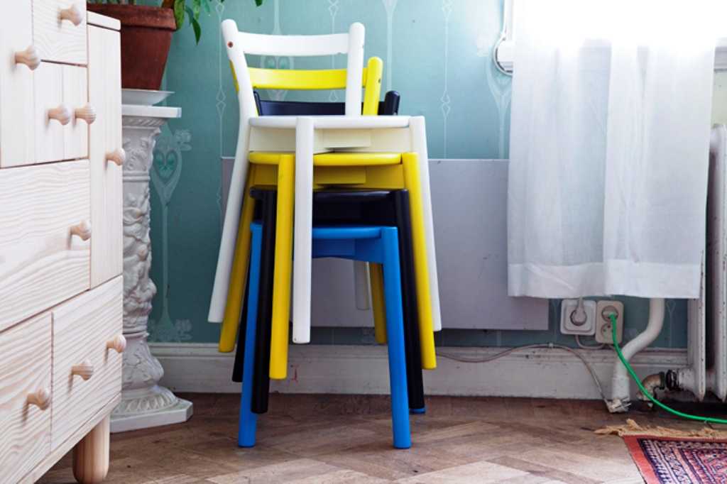 У Икеа представлен огромный выбор цветовых решений для обустройства табуреток и стульев. Среди популярных голубые, красные, желтые, белые, зеленые и другие.