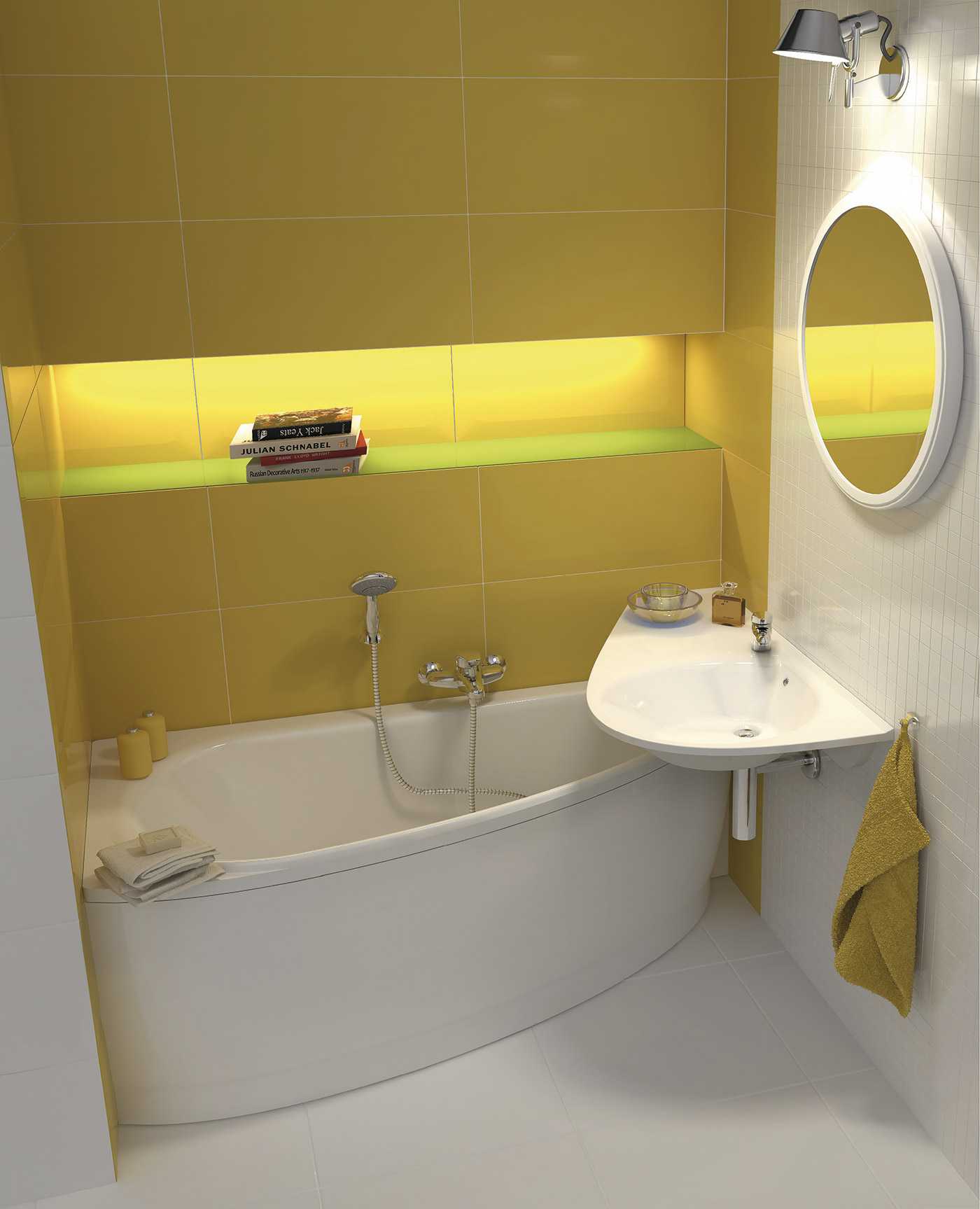 Прием используется с осторожностью в прямоугольных узких помещениях, так как есть риск преподнести их как шкаф, так что, увлекаясь зрительными иллюзиями, берите во внимание все интерьерные параметры, а не отдельно взятые участки