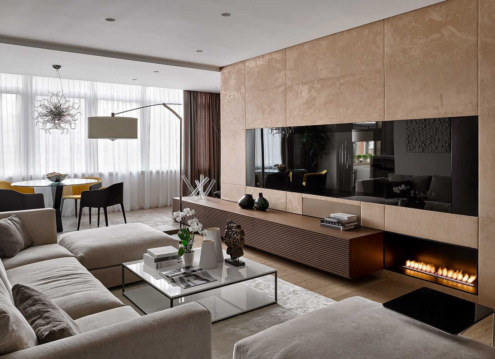 гостиную лучше всего оформить в теплую цветовую гамму. Коричневая гамма способна создать домашний уют и дружескую атмосферу. Наиболее популярное решение – это оформление гостиной в кофейные и молочные оттенки;