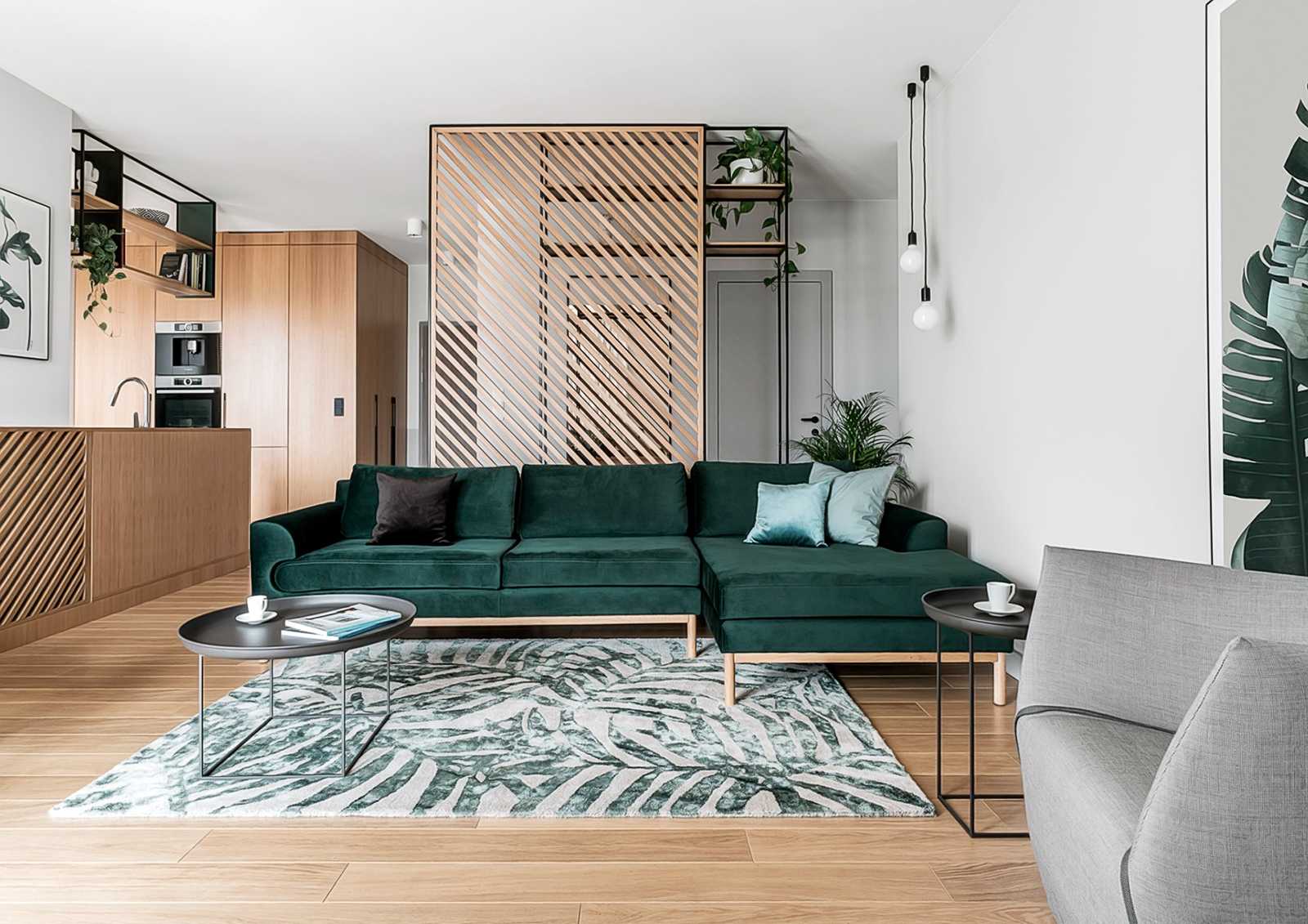Холодные цвета тоже можно использовать в интерьере квартиры. Наиболее актуальные варианты — серый, малахитовый и сапфировый. Если собираетесь использовать их в качестве фонов, будьте осторожны — при недостатке солнечного освещения они могут делать комнаты ещё темнее и визуально уменьшать пространство.
