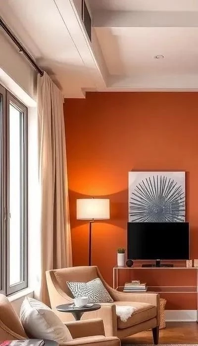 Глубокие оттенки в сочетании с яркими акцентами – еще один тренд. Например, терракотовые стены можно дополнить подушками и пледами насыщенного синего или изумрудного цвета.