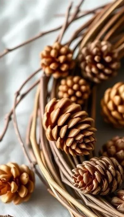 Рустик – это любовь к натуральности и простоте. В декоре из шишек и веток это выражается в использовании необработанных материалов, грубых текстур и естественных форм. Сочетайте шишки и ветки с мешковиной, льном, деревом и коваными элементами.