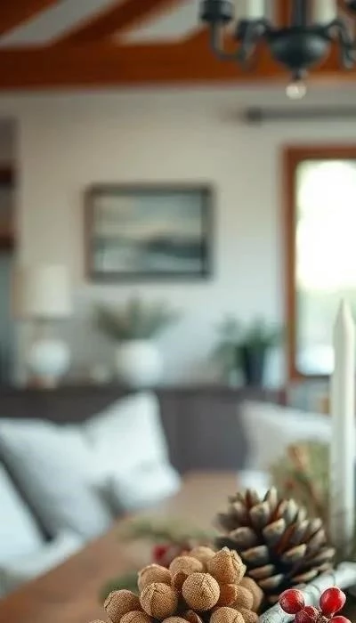 Минимализм и скандинавский декор – еще один популярный тренд. В этом стиле декор из шишек и веток используется в качестве акцентов, не перегружая пространство. Предпочтение отдается простым формам, лаконичным композициям и нейтральным цветовым решениям. Шишки и ветки могут быть окрашены в белый, серый или бежевый цвет, чтобы гармонировать с общей цветовой гаммой интерьера.