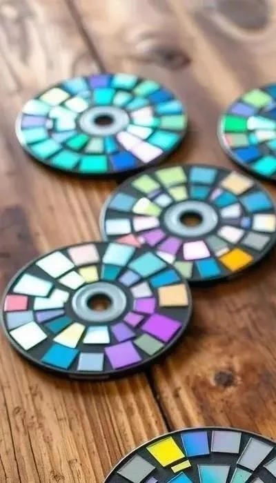 К новогодним украшениям относятся елочные игрушки из дисков, вырезанные в форме снежинок или звезд. Мозаика из фрагментов дисков – более сложный проект, требующий терпения и аккуратности. Садовые фигуры: вырежьте из дисков элементы и соберите из них фигуры животных или сказочных персонажей. Настенные панно: создайте абстрактные композиции из целых и фрагментированных дисков.