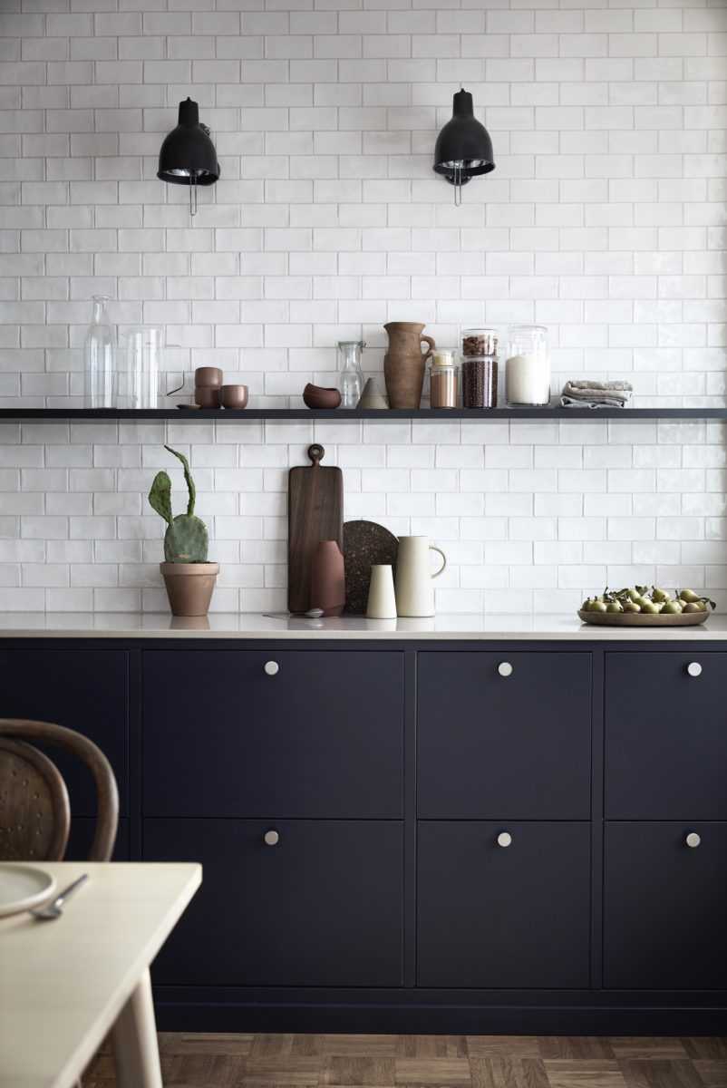 Если черный кажется вам слишком мрачным, рассмотрите вариации с темно-синим. Также отличной идеей будет серая кухня в скандинавском стиле.