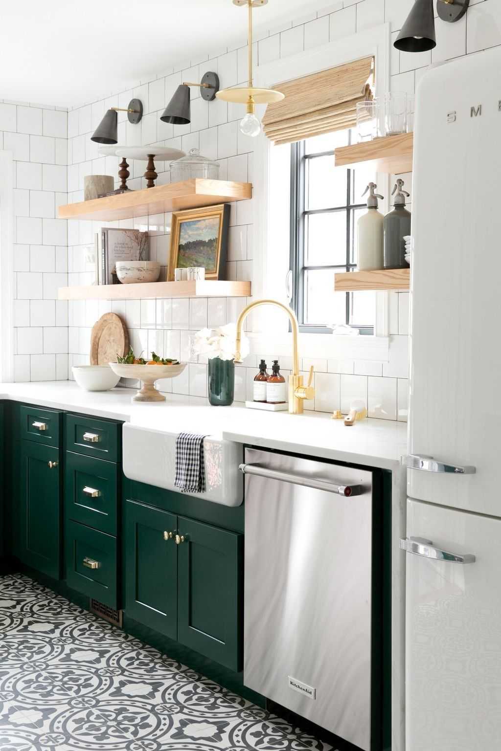 Зеленый — цвет сочной травы и его вариации. Белые стены с деревянным гарнитуром и зелеными акцентами – классика сканди стиля, предполагающего единение с природой.
