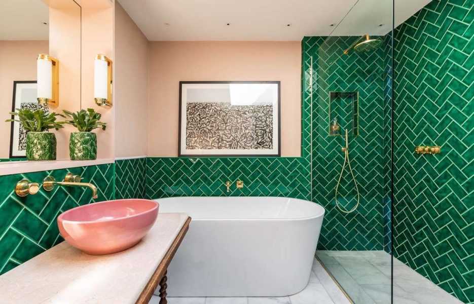 Если вам по душе нежный, романтичный и оптимистический настрой в интерьере, то необходимо с изумрудным окрасом сочетать розовый.