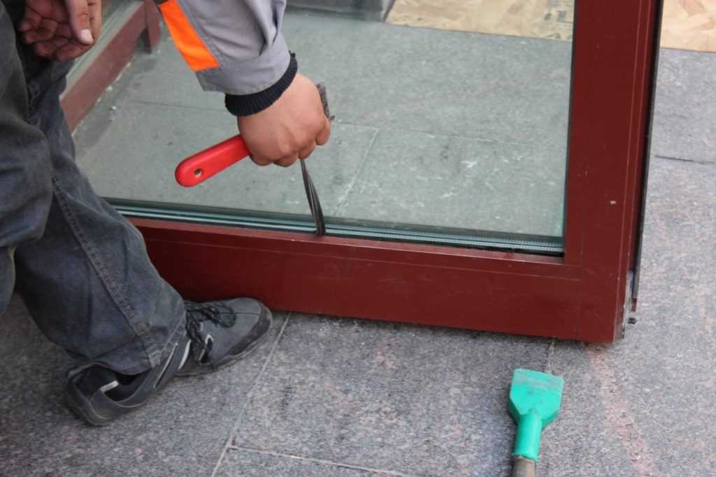 Для начала необходимо очистить все пазы для фиксации вставки от остатков старого клея. Удалить с них пыль, хорошенько зашкурить. Потом нанести новый слой герметика, а на него закрепить резиновый уплотнитель. После этого, нужно установить вставку из стекла, закрепить ее штапиками. Если вставка нестандартной, фигурной формы, то нужно сделать ее макет из картона и отнести в мастерскую для резки.