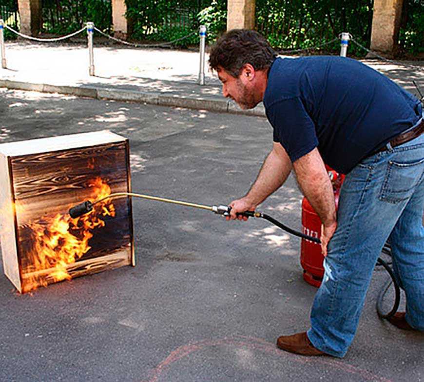 Старение дерева с помощью высоких температур считается достаточно рискованным методом, требующим максимальной предосторожности. Проводить обработку лучше всего на открытом воздухе или, как минимум, в открытых помещениях