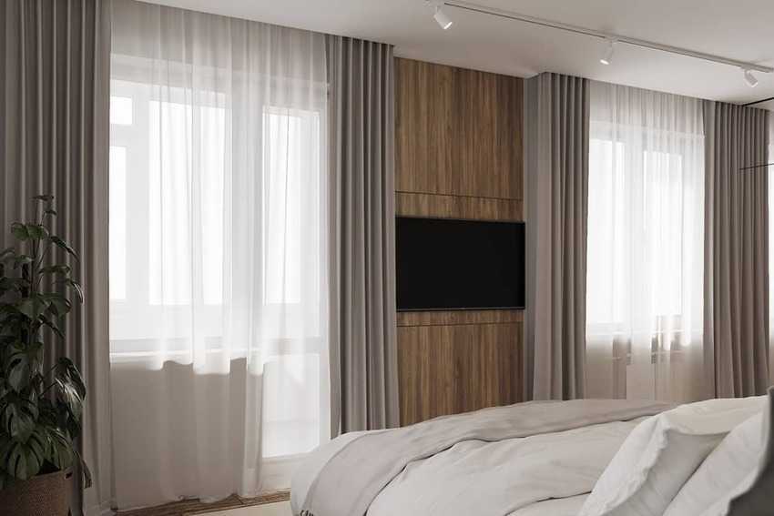 В интерьер спальни отлично впишутся жалюзи, римские шторы. Они придадут пространству комнаты дополнительный объем и лёгкость.