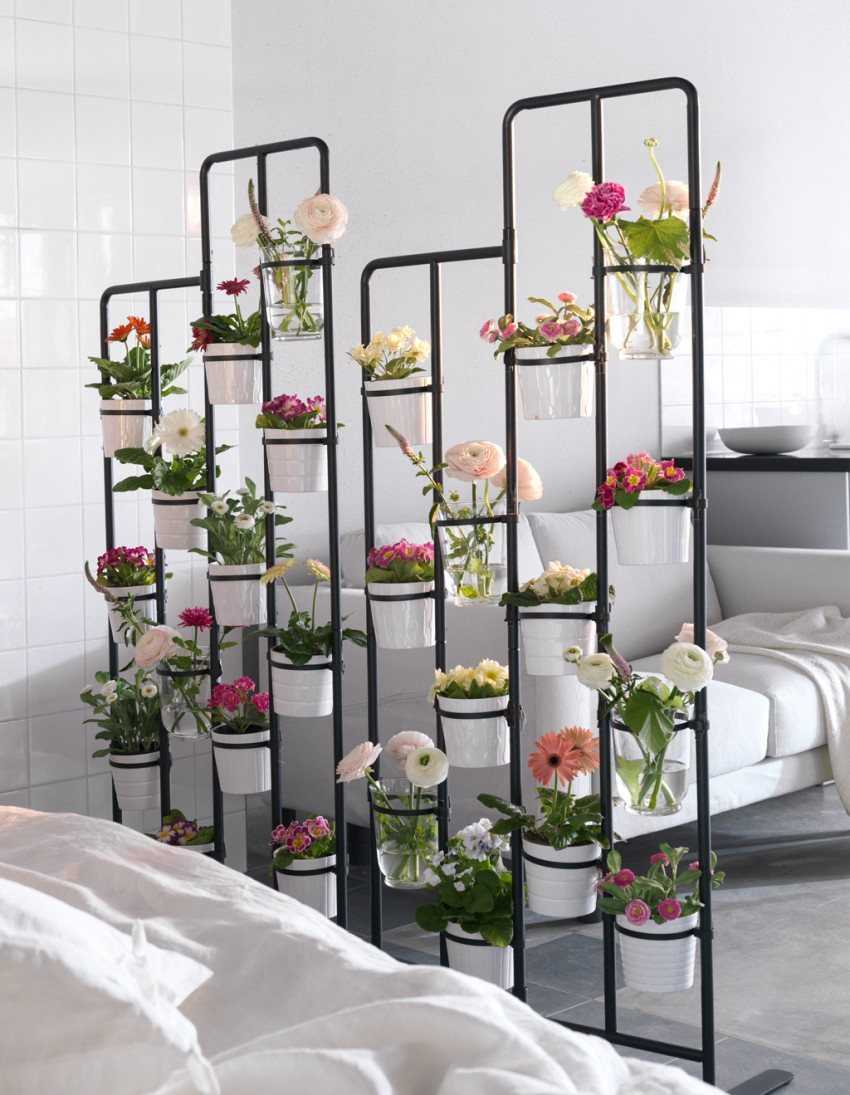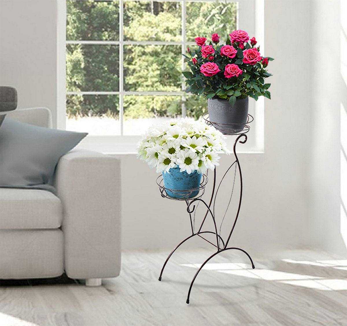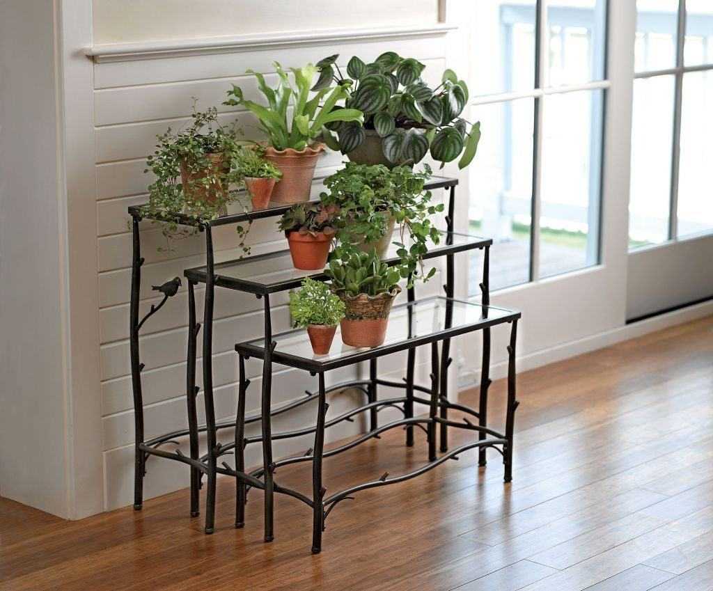 Подставка для цветов в интерьере — это элегантный дизайн, позволяющий размещать комнатные растения на разных уровнях: от пола, часто до самого потолка. Ботанические образцы, расположенные в трехмерном пространстве, могут дополнять друг друга или контрастировать. Современные модели цветников можно рекомендовать для минималистичных интерьеров, а художественные металлические подставки, украшенные орнаментами в виде листьев и цветов, прекрасно подойдут стильным жилым комнатам и спальням в романтическом и идиллическом стиле.