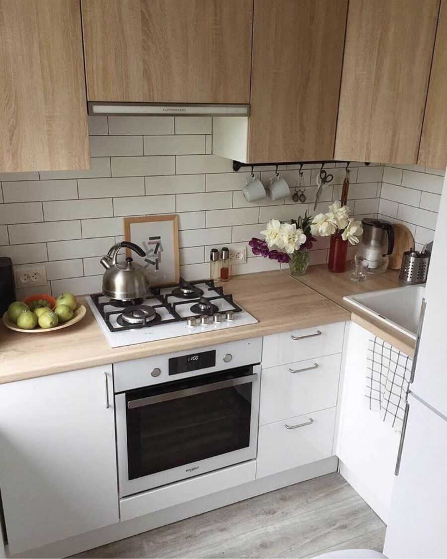 В зависимости от площади кухни, фартук из плитки кабанчик легко сочетать с другими видами отделки, создавать индивидуальные комбинации. Чаще всего сочетается с окрашенной фоновой стеной в нейтральных цветах.