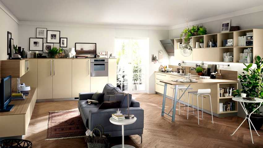 В кухню-студию непременно нужно поставить барную стойку. Она является непременным атрибутом подобных интерьеров.