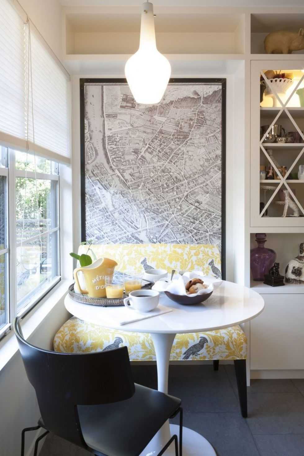 Лучше выбирать диван без подлокотников и с компактным основанием – так за столом будет просторнее сидеть.