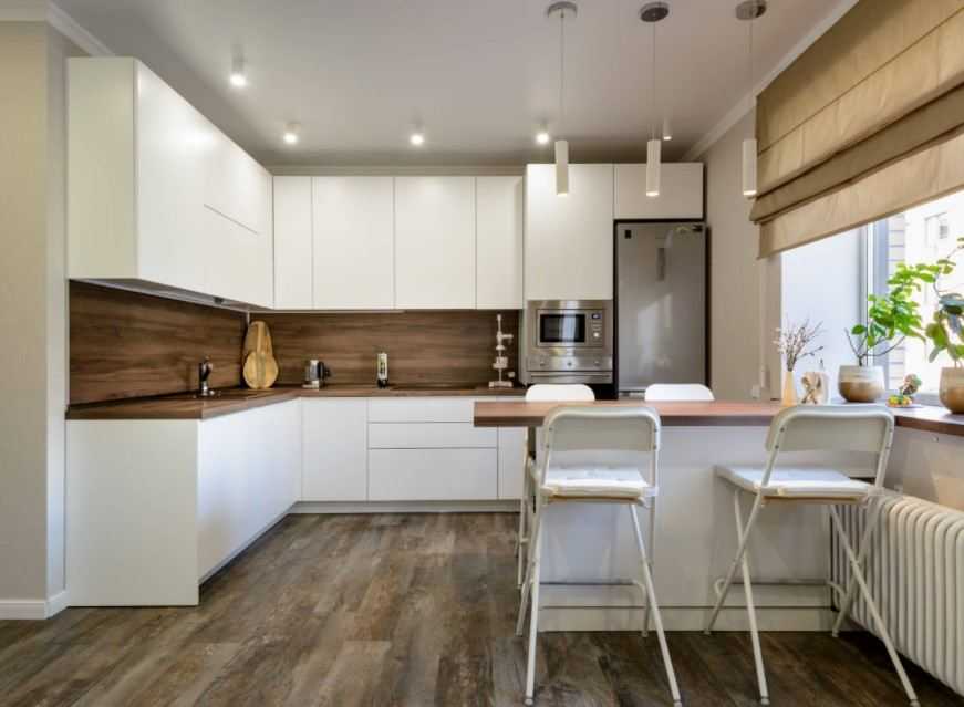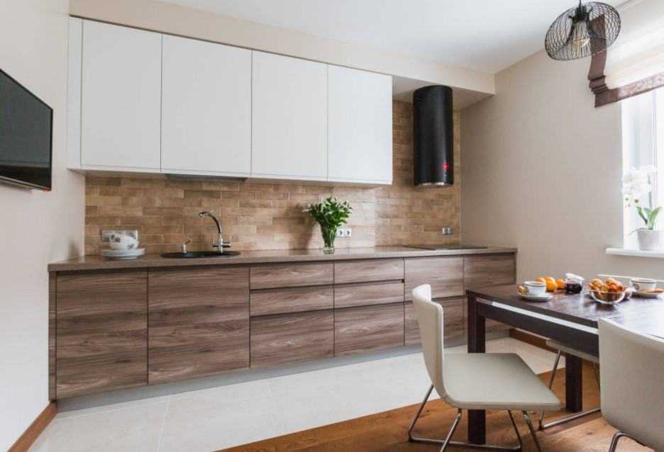 Классика никогда не выйдет из моды и отлично подходит для нестандартных, совмещенных и маленьких кухонь.