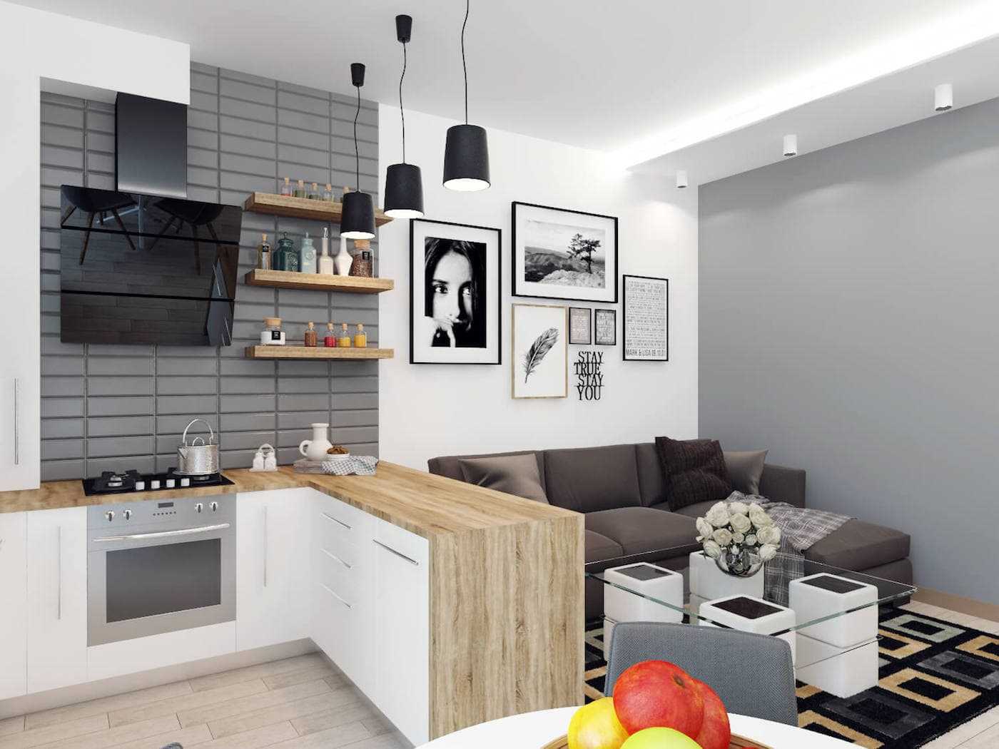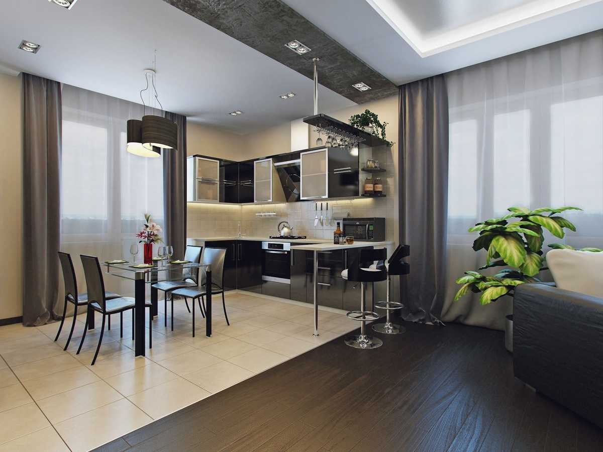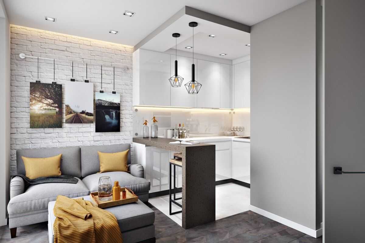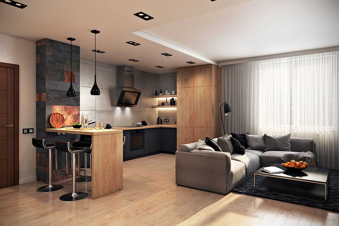 Несмотря на то, что дизайн гостиной и кухни в квартире-студии должен сохранять одинаковые черты, важно грамотно провести разделение пространства на зону отдыха и место приготовления пищи. Сегодня для зонирования кухни студии используют сразу несколько приемов