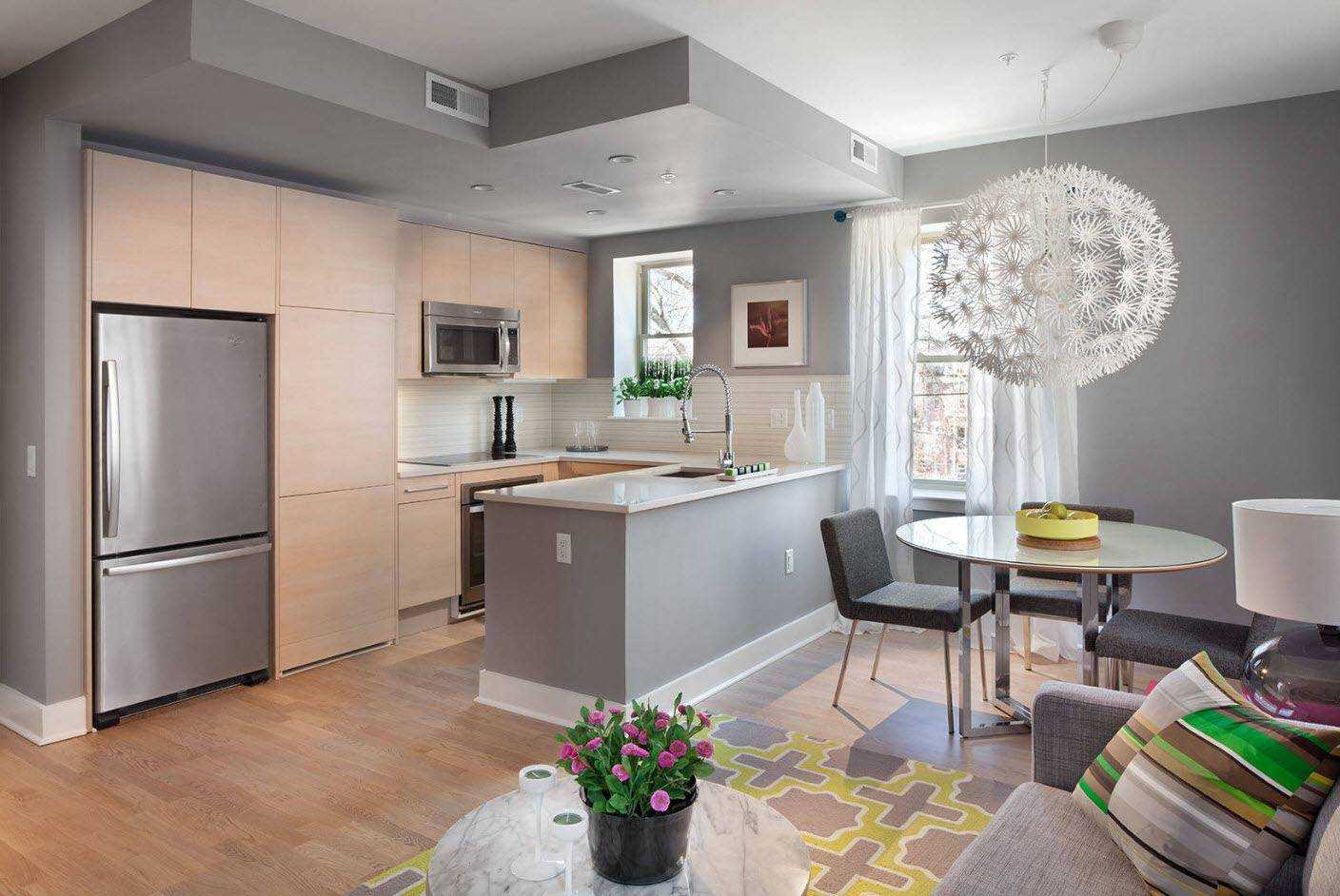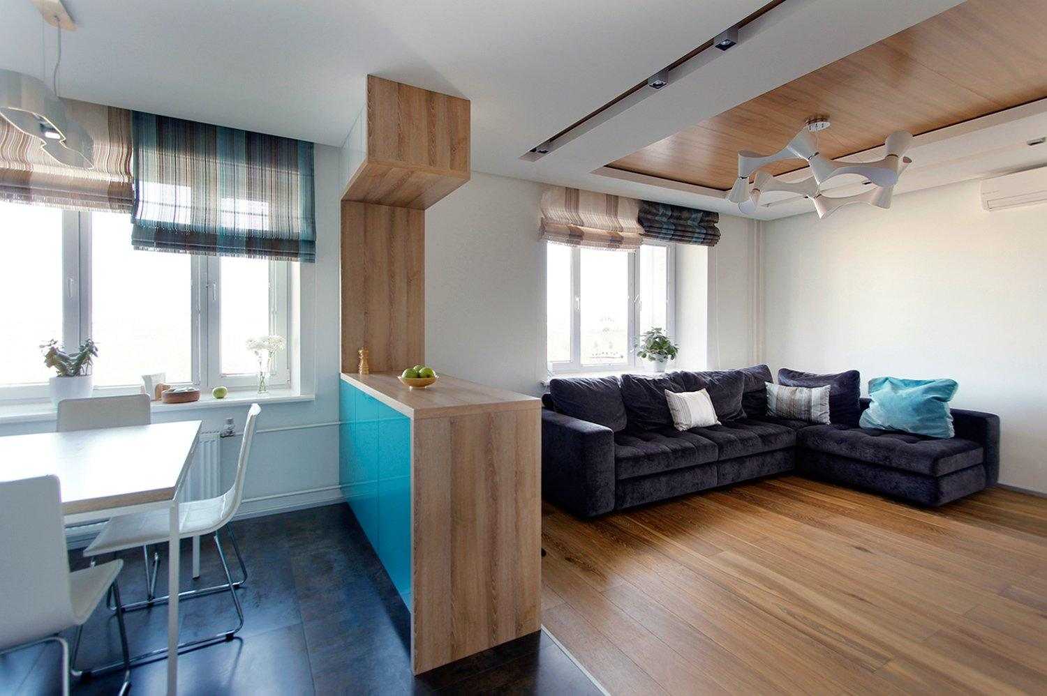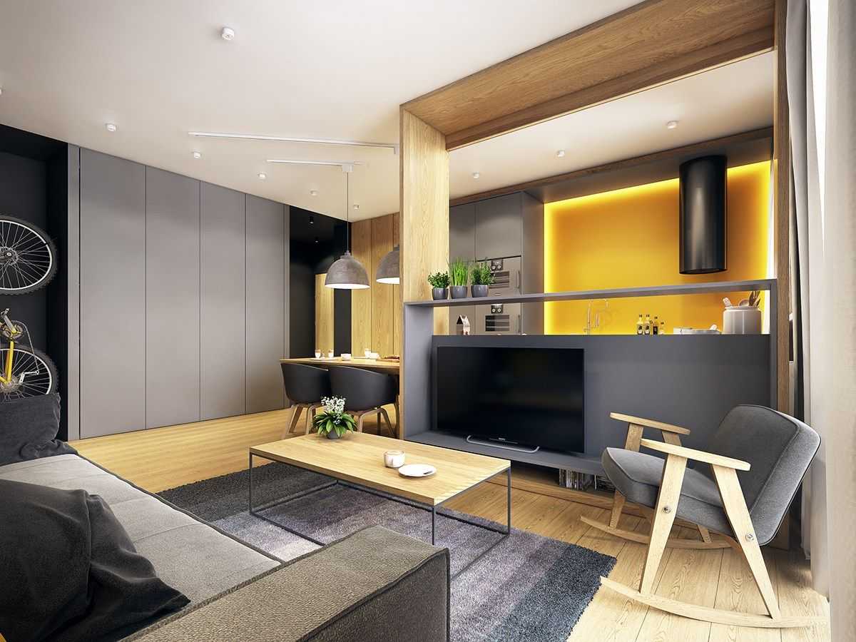 Несмотря на то, что дизайн гостиной и кухни в квартире-студии должен сохранять одинаковые черты, важно грамотно провести разделение пространства на зону отдыха и место приготовления пищи. Сегодня для зонирования кухни студии используют сразу несколько приемов