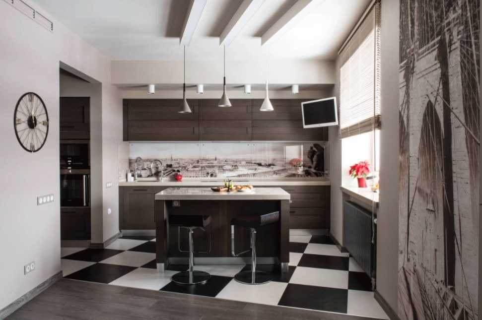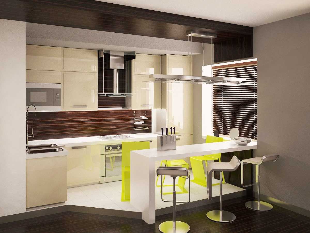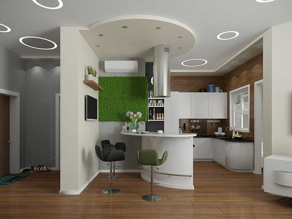 - разноуровневый пол – кухонную зону можно приподнять на своего рода подиуме