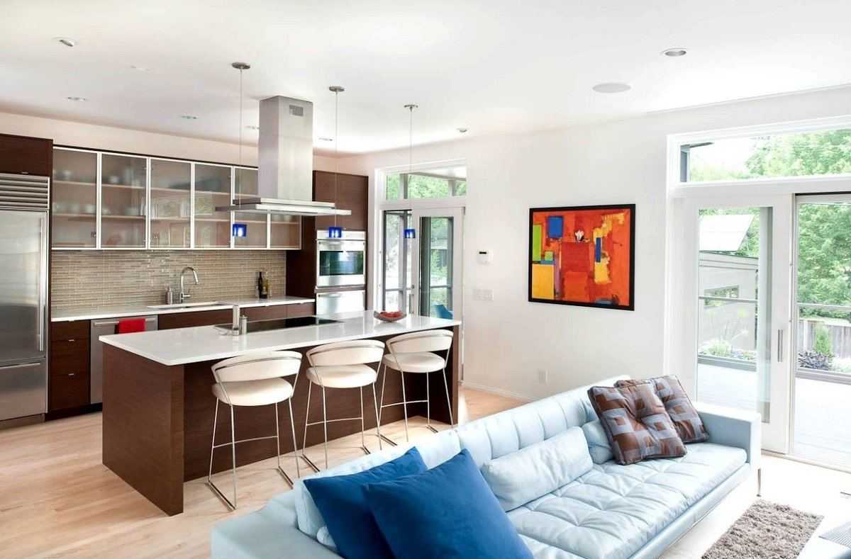 Наверняка вы сможете выбрать оптимальный вариант с учетом планировки конкретного пространства гостиной-кухни, просмотрев наши фотоидеи!
