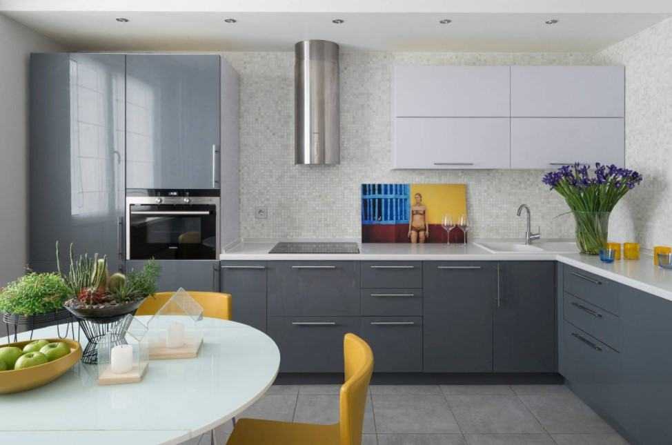 Считается, что цветовая гармония – это грамотно подобранные 3 цвета в интерьере. 60% цвета должны составлять стены и мягкая мебель. 30% отдают дополнительному цвету — это фасады кухонного гарнитура и каркасные части меблировки. 10% должны составлять яркие акценты. Но последние годы в тренде нарушать правила. Поэтому становятся популярны трехцветные кухонные гарнитуры.
